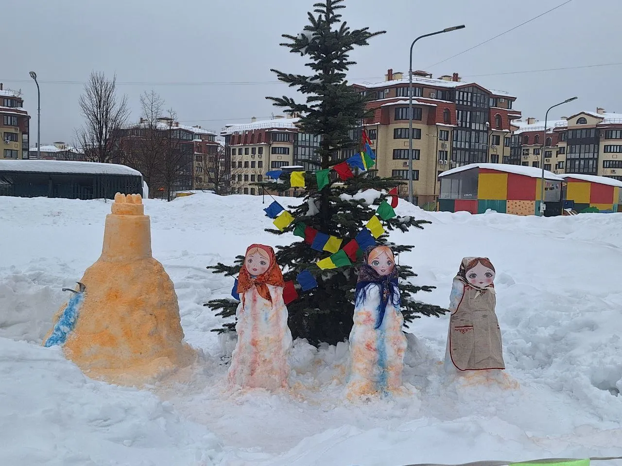 -снежную крепость для игр;